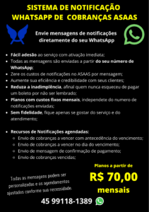 ⚠️ Notificações de cobranças personalizadas para seus clientes enviadas diretamente do seu número Whatsapp 👈